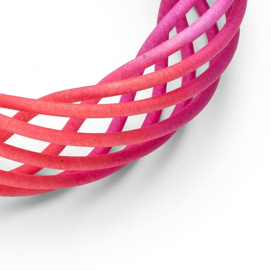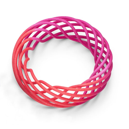 Katy’s work explores circles/rings, repetition and positive/negative space. She enjoys experimenting with metal and develops her work both in models and sketches.